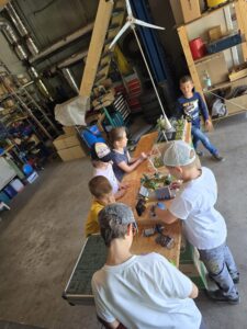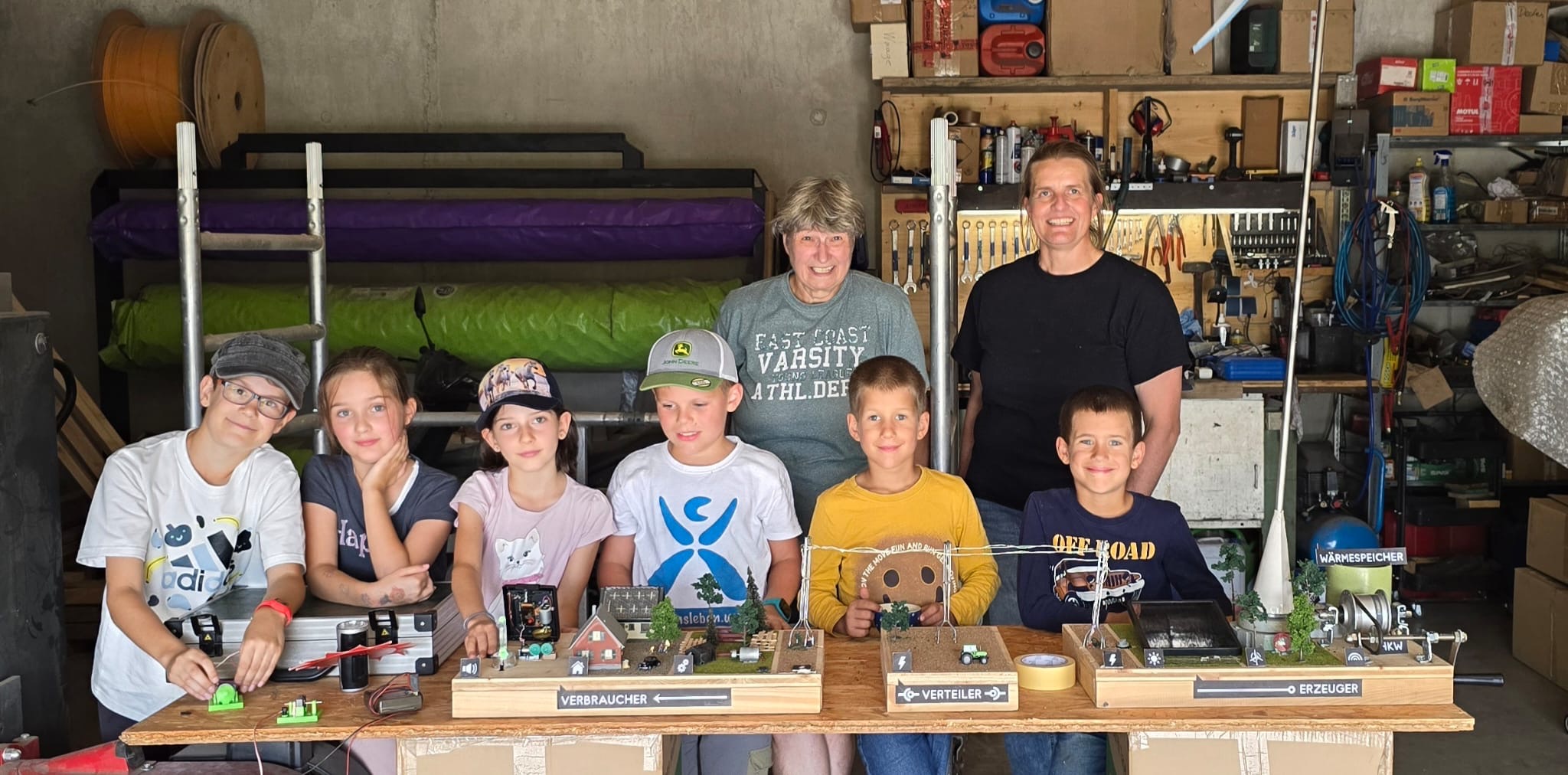 Eifrig erzeugten sie anhand von handbetriebenen kleinen Generatoren, die Mayr in das Modell integriert hatte, Strom, der die Miniaturgebäude, akustischen Geräte und Lichtelemente mit Energie versorgte. Mit einem leckeren Imbiss, der von Helga Putz zubereitet wurde, konnten sich die Kinder stärken.