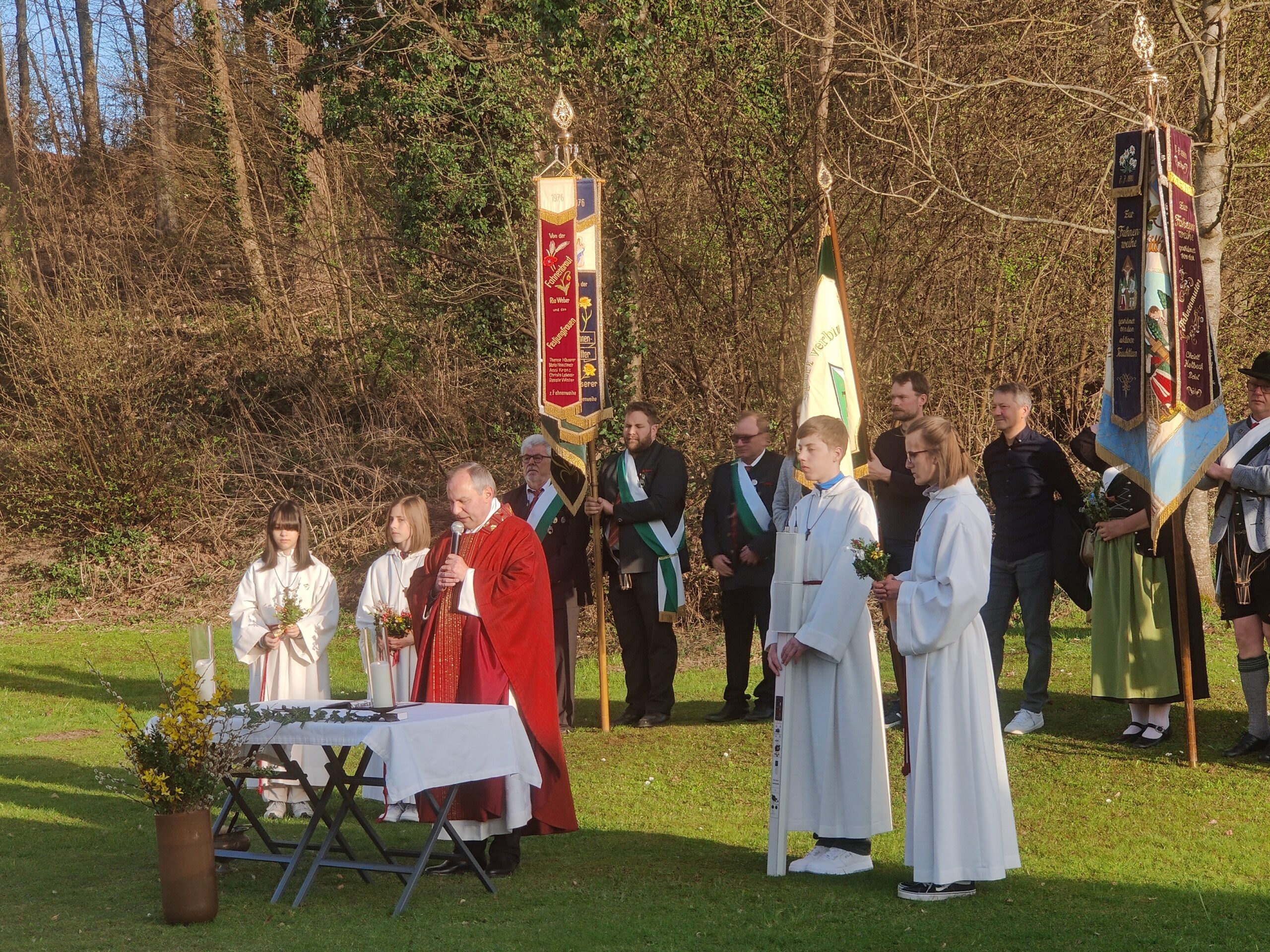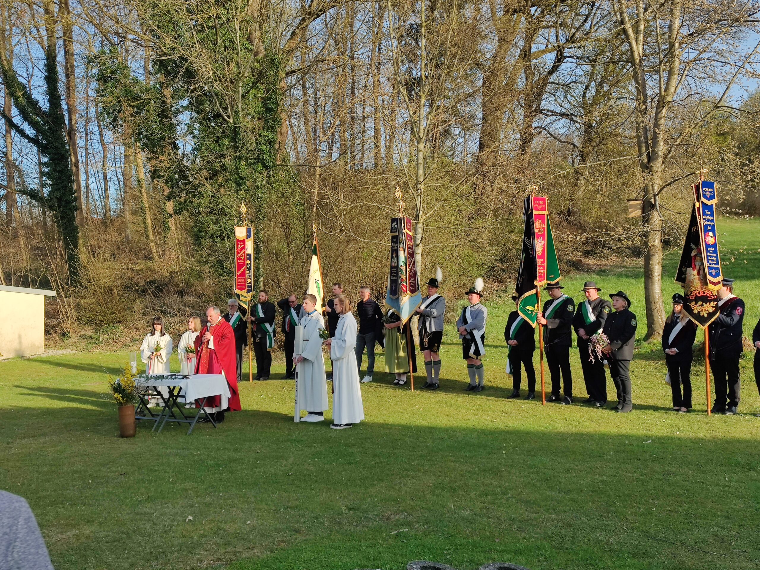 Am 12. April fand eine besondere Vorabendmesse statt. Bei herrlichem Wetter versammelten sich die Gemeindemitglieder im Pfarrgarten zur traditionellen Palmsegnung.